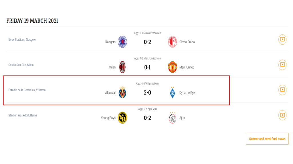 Next comes the Round of 16. In the Round of 16, they clashed against the Ukrainian Side Dynamo Kyiv and won with a Comfortable 0-4 aggregate ( 0-2 Away / 2-0 Home) in a 2 Leg Match for progressing to Quarter Finals.